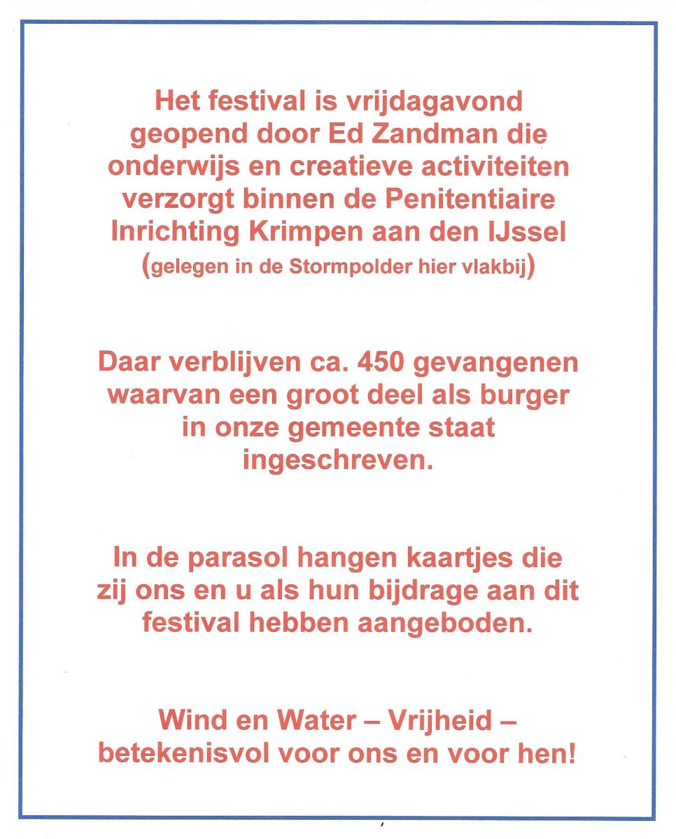 26 september 2011Niet alleen het goede doel Sailwise had een plek binnen het festival. Naast kunst, een (open) podium, diverse installaties, een galerie en een beeldentuin was er ook aandacht voor P.I. De IJssel en zijn bewoners.